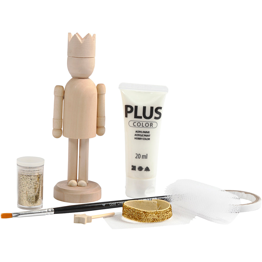 Material für 1 Ballerina - feine Holzfigur, Tüll, Glitzerschleife, Farbe, Pinsel, doppelseitiges Klebeband, Glitter Inhalt: 1 Holzfigur, 20 ml Bastelfarbe Off-White, Pinsel, 5 g Glitter Gold, 10 cm Glitzerband Gold, 5 x 70 cm Tüll weiß bemalt, doppelseitiges KlebebandInhalt: 1 Holzfigur, 20 ml Bastelfarbe Off-White, Pinsel, 5 g Glitter Gold, 10 cm Glitzerband Gold, 5 x 70 cm Tüll weiß bemalt, doppelseitiges Klebeband