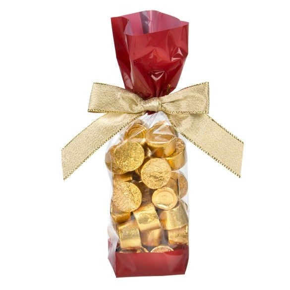 Diese bedruckten Seitenfaltenbeutel sind perfekt für leichte Produkte wie Süßigkeiten, Kekse, Nüsse und andere Delikatessen. Auf der Ober- und Unterseite der Tasche befindet sich ein farbig bedruckter Streifen, der Rest der Tasche ist transparent, damit Sie und Ihre Kunden deutlich sehen können, welche Produkte sich in der Tasche befinden. Sie können die Tasche z. B. mit Bändern und Schleifen dekorieren.