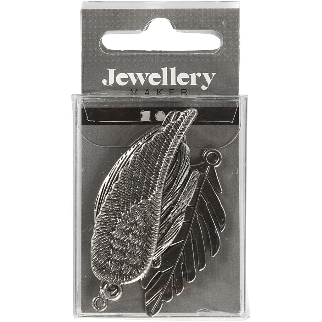Federn, Größe 29-55 mm, Lochgröße 12-20 mm, Antiksilber, 4 Stk/ 1 Pck [HOB-637110]