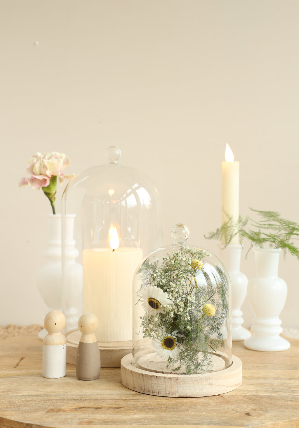 Füllen Sie die Glasglocken beispielsweise mit Trockenblumen, einem schönen Foto oder Ihrem eigenen Produkt! Möchten Sie die Glocken auf einen Tisch oder ein Regal stellen? Dann ist es eine gute Idee, verschiedene Arten von Glasglocken zu verwenden.