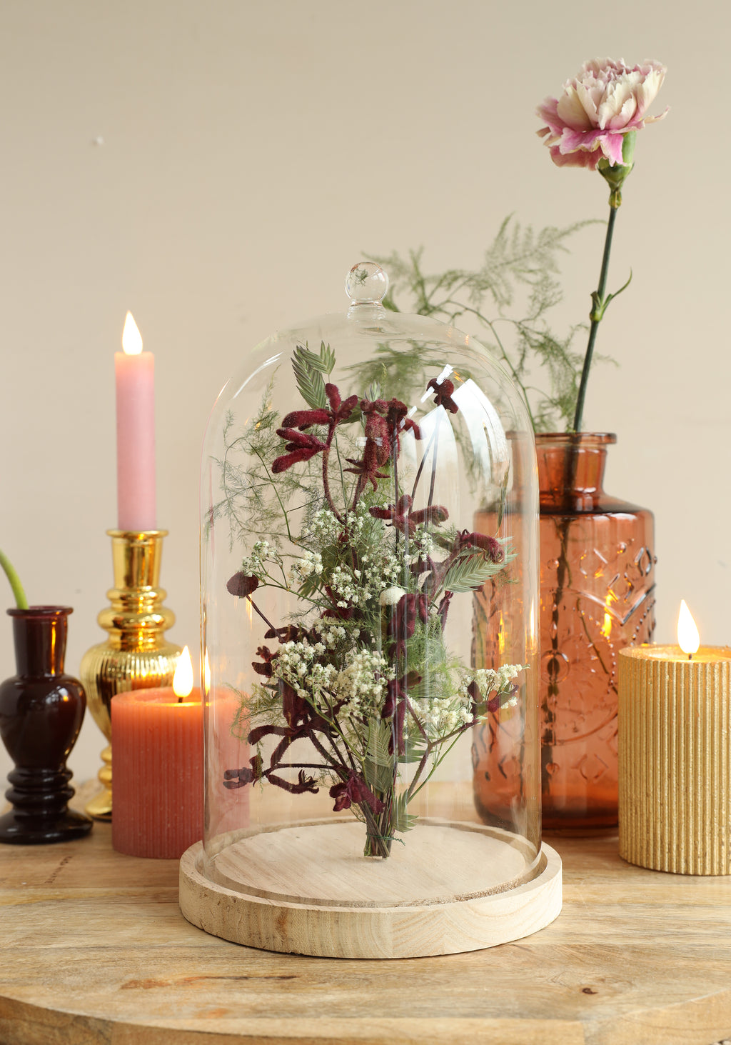 Füllen Sie die Glasglocken beispielsweise mit Trockenblumen, einem schönen Foto oder Ihrem eigenen Produkt! Möchten Sie die Glocken auf einen Tisch oder ein Regal stellen? Dann ist es eine gute Idee, verschiedene Arten von Glasglocken zu verwenden.