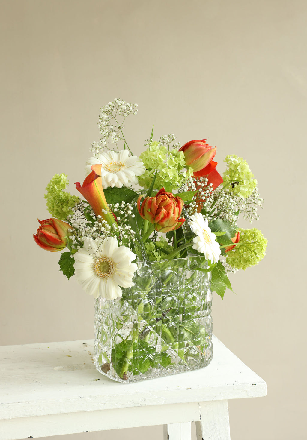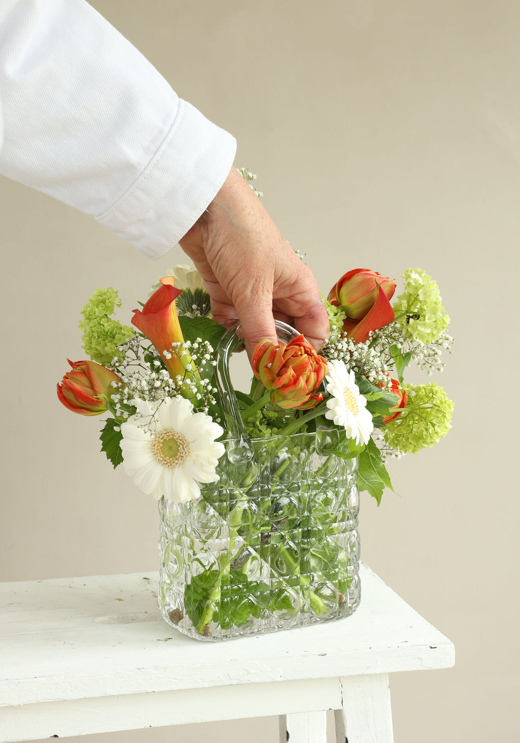 Möchten Sie dieser Blumenvase einen zusätzlichen Effekt verleihen? Geben Sie dem Wasser zum Beispiel mit Wasserfarbe eine einzigartige Farbe oder füllen Sie die Vase mit Wasserperlen für einen einzigartigen Effekt!