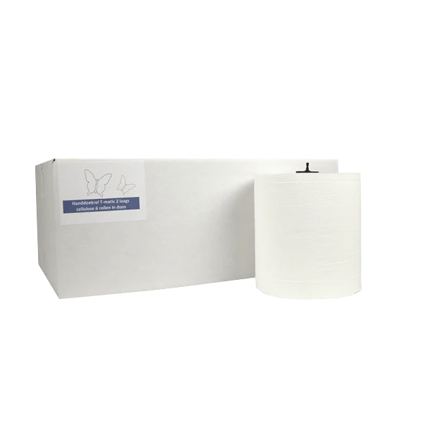Gute Hygiene ist äußerst wichtig, ein absolutes Muss im (Firmen-)Leben. Dazu trägt die Handtuchrolle Matic aus 100 % Zellulose bei. Die Handtuchrolle mit Kappe besteht aus 2 Lagen Papier mit einer Breite von 21 cm. Eine Rolle enthält nicht weniger als 150 Meter Papier. Die Rolle hat innen ein Rohr mit Kappen an beiden Enden. Diese Kappen passen dann genau in die Öffnungen des entsprechenden Spenders.