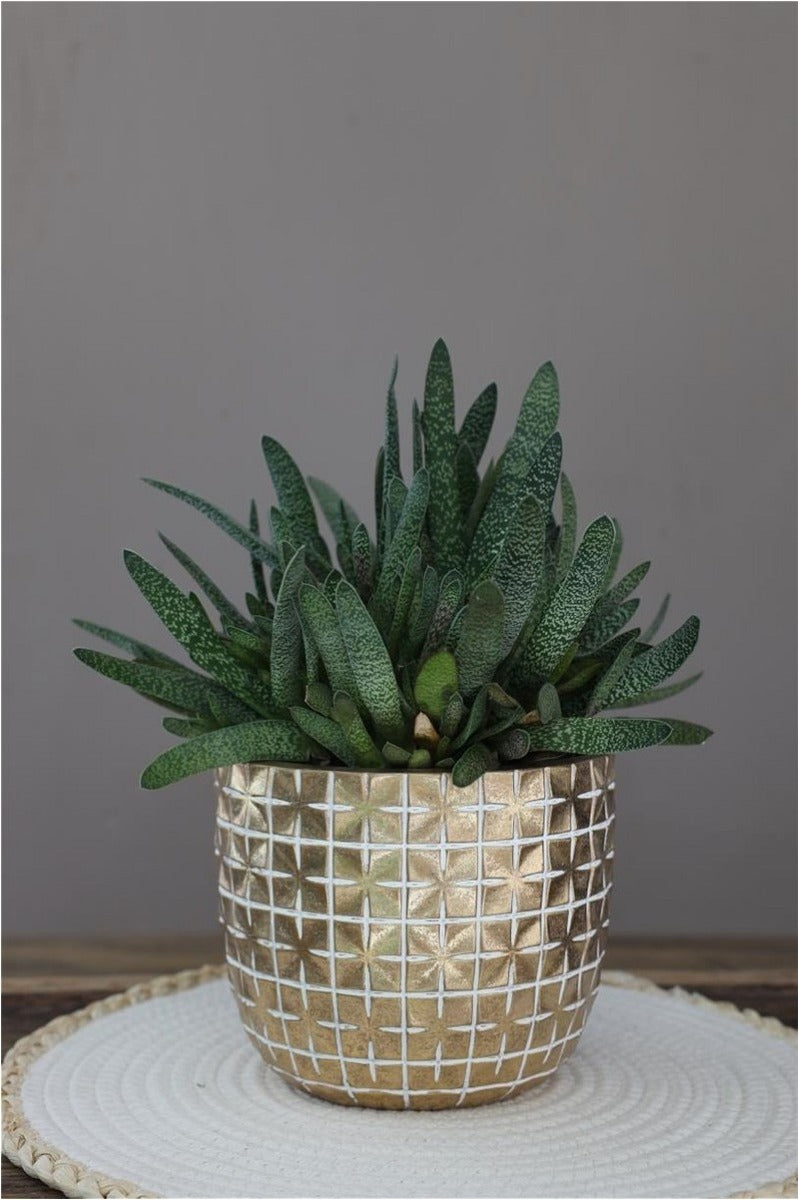 Wenn Sie eine Pflanze kaufen, wollen Sie sie natürlich in einen schönen Blumentopf stellen. Dann ist der Hanoi-Topf in der Farbe Gold genau das Richtige für Sie.!