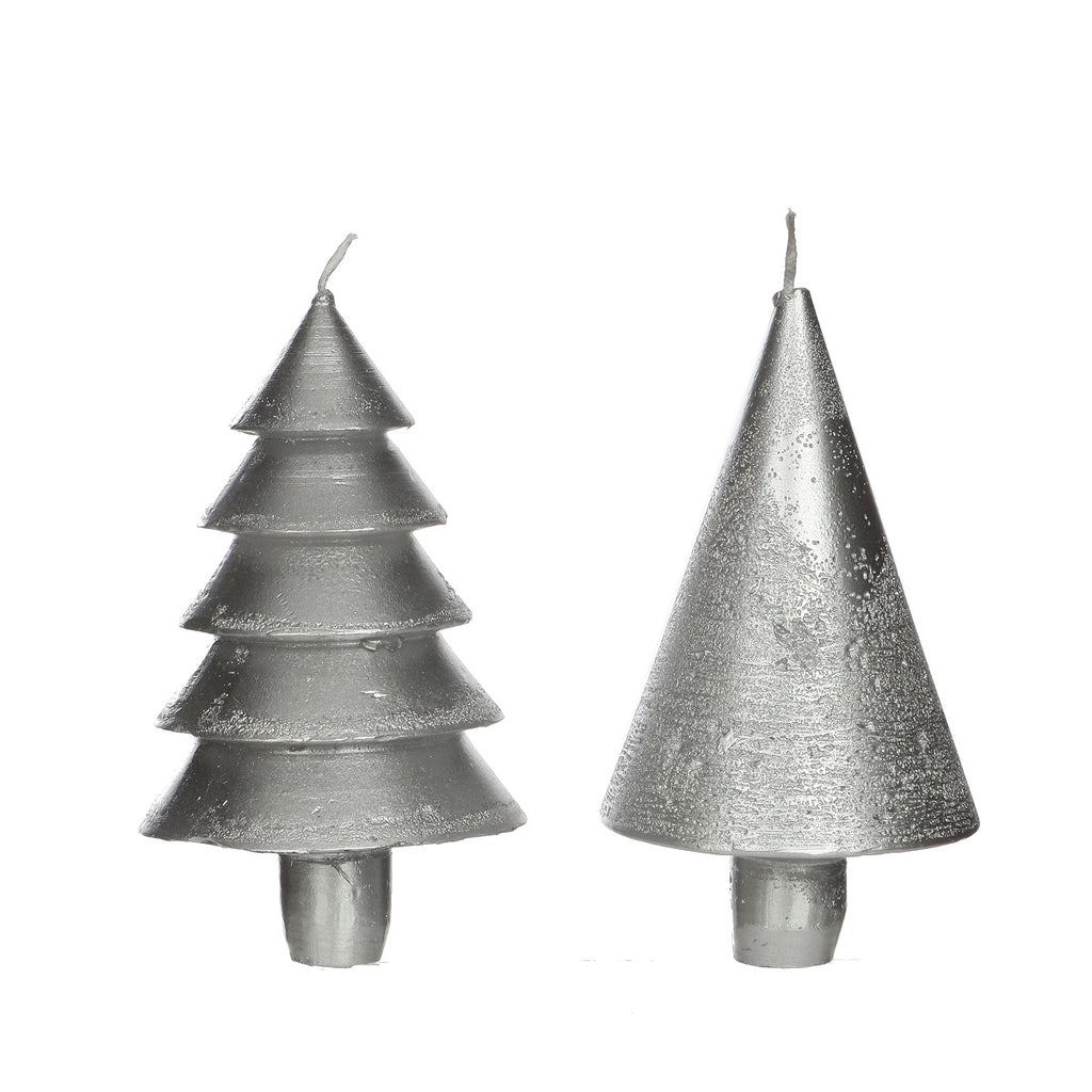 Kerzenset 2 Bäume Silber | H: 12cm (1 Set, 6 Stück) [IFS-32156]