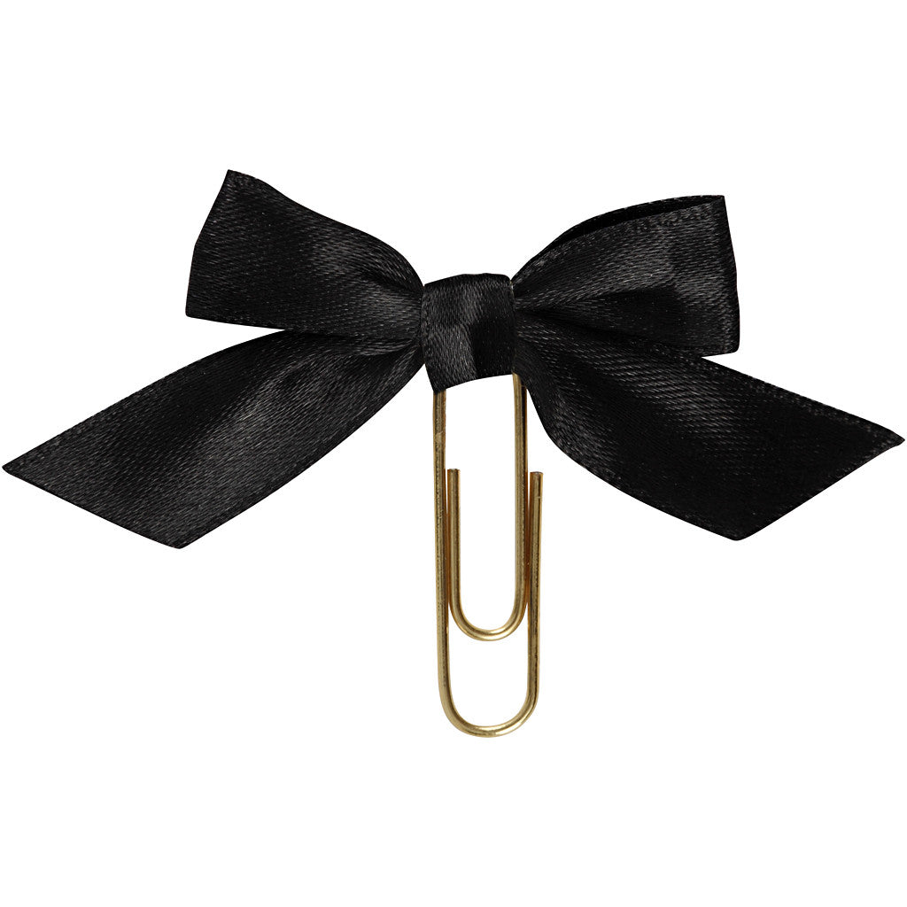 Vergoldete Metallklammer mit Schleife aus Satinband - als effektvolle Deko auf Karten, Einladungen, Geschenken, Scrapbooks, Planern etc