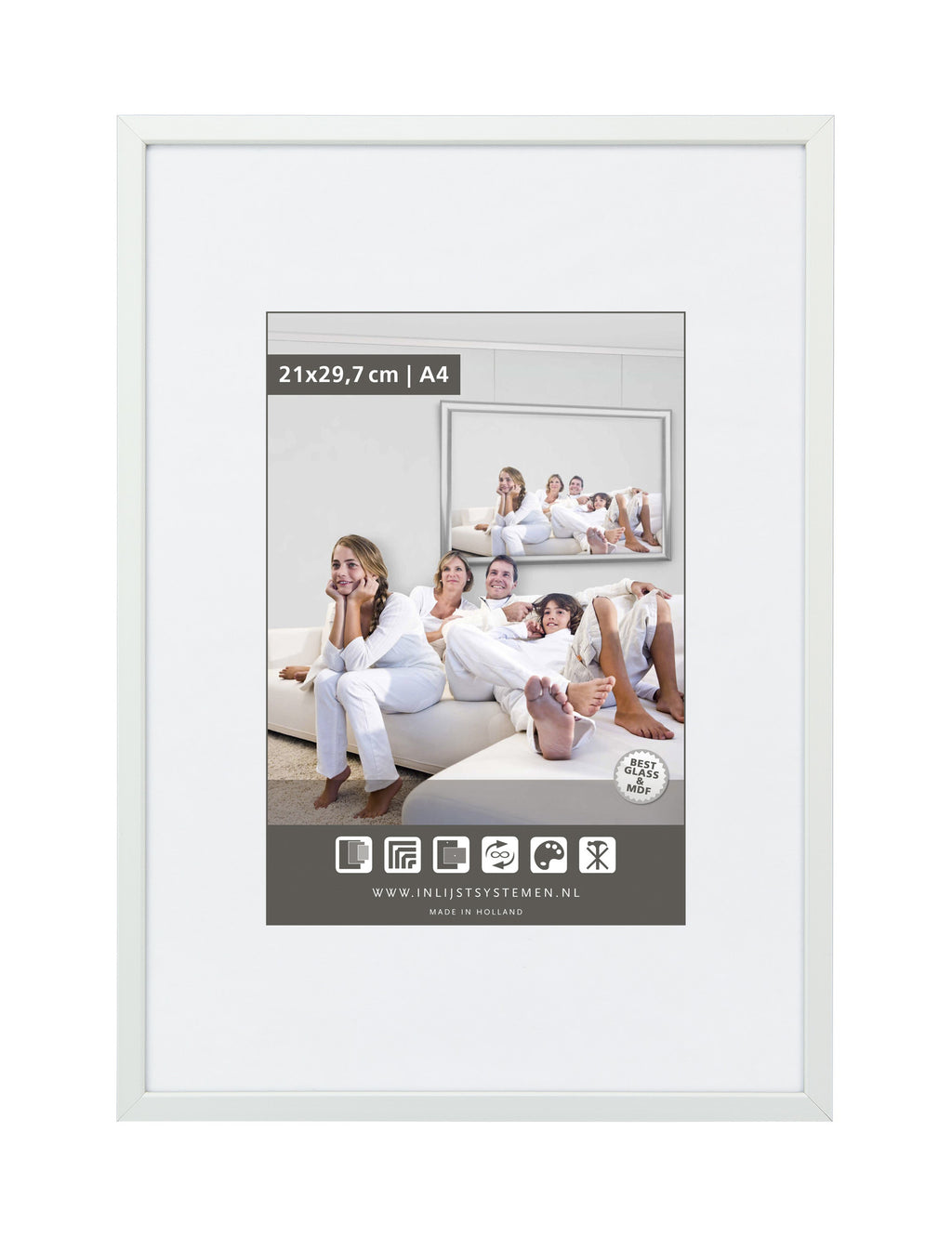 Dieser Foto-Wechselrahmen erlaubt es Ihnen die Bilder leicht umzuwechseln und ist mit einem transparenten Poly-Fenster ausgestattet, das nahezu unzerbrechlich ist. Der Rahmen hat ein luxuriöses Aussehen und hängt schön in jedem Raum. Ist das nicht genau der Rahmen, den Sie suchen? Kein Problem! Die Wechselrahmen sind in verschiedenen Größen und Farben erhältlich!