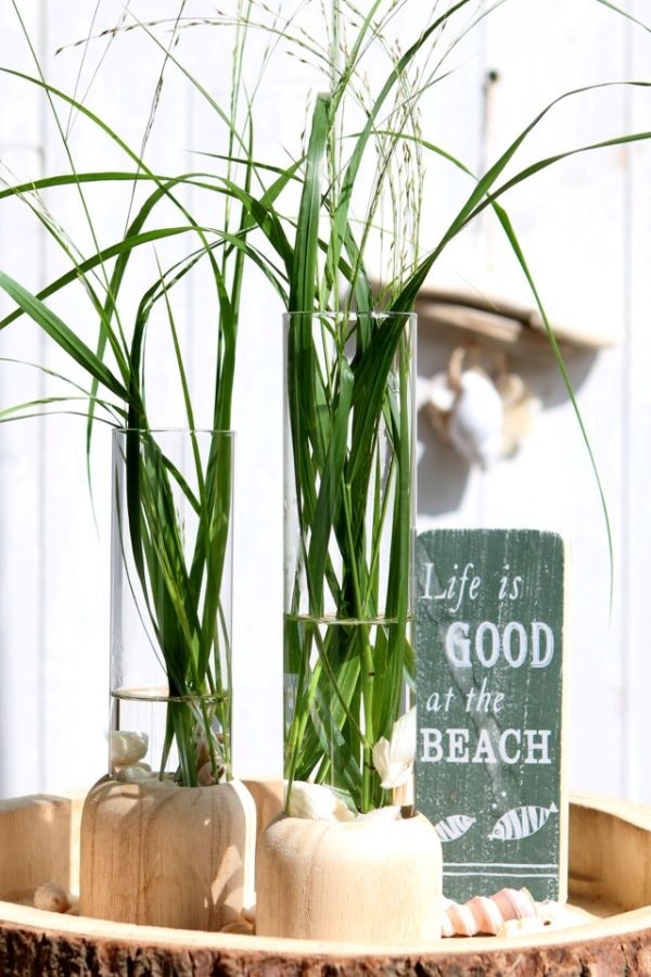 Holzsockel mit Reagenzglas für Blumen