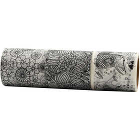 Breite Klebeband-Rollen aus feinem Papier mit matter Oberfläche und schwarzem Design - zum Ausmalen mit Marker.