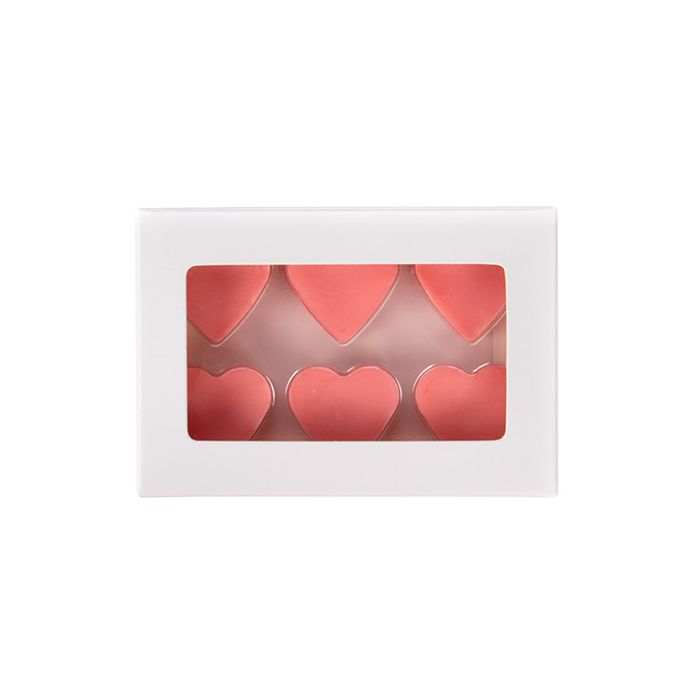 Let your chocolates, waxmelts, and more shine with White Kraft Artisan Candy boxSets! Made from food safe materials, CNDYH274W comes with white kraft outer boxes measuring 7 x 2.1 x 10.3 cm and inner thermoformed trays with 6 heart shaped cavities. The outer boxes in this set are made from food safe kraft material and feature a crystal clear PET window for a quick look inside. The inner thermoformed tray is designed to hold 6 items in its heart shaped cavities that are 1.1 cm deep. For waxmelts, these trays can withstand temperatures up to 149 degrees fahrenheit. Available in packs of 25.